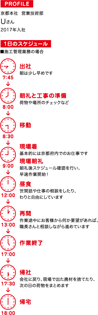 現在、工事管理・現場管理を担当しながら、既存のお客様先への営業活動も同時並行で行っています。他にも、お客様フォローや図面作成まで、色んなことを任せてもらっています。「少しやること多いんじゃないか?と思う人もいるかもしれません。ただ、幅広く担当するのには理由があります。それは「お客様満足度の向上」です。
